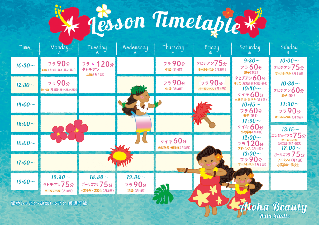 フラのレッスン-時間割と料金